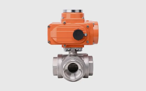 电动三通球阀采用KST型回转式角行程电动执行机构,以AC220V、AC380V或DC24V电源电压作动力,接受工业自动化仪表控制系统输入的(4-20ma)电流信号或电压信号,即可控制运转,实现对工艺介质的比例调节或二位切换控制。三通球阀是综合国内外先进技术而开发的新型三通切换型调节阀。标准球芯有L型三通双口孔中,改变球芯与管道的相对角度,可以对三支管道流体实现不同的组合控制;T型孔道可起配比作用。